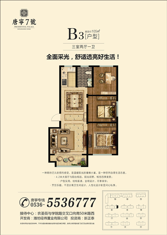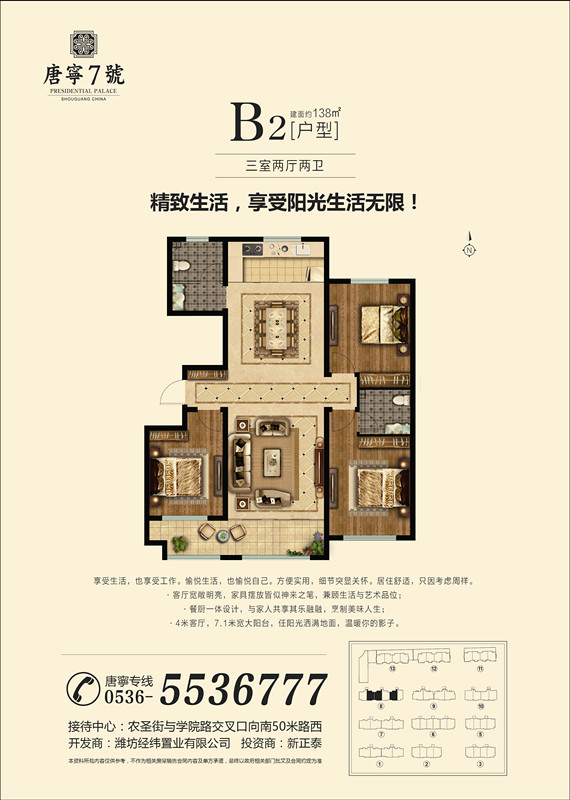 無論在地段、環(huán)境、配套、建筑、景觀、戶型設(shè)計(jì)以及物業(yè)管理等方面,都是壽光首屈一指的。擁有唐寧7號(hào)不僅是您身份和檔次的象征,也必將是您居住和投資的**佳選擇!