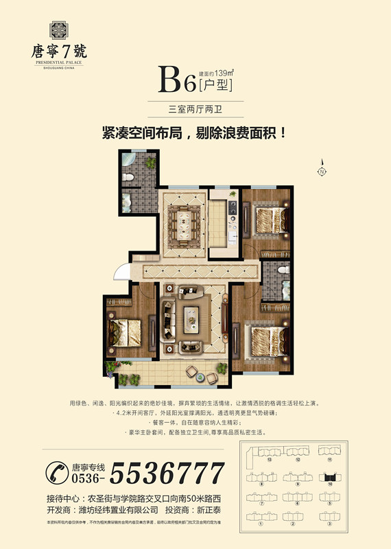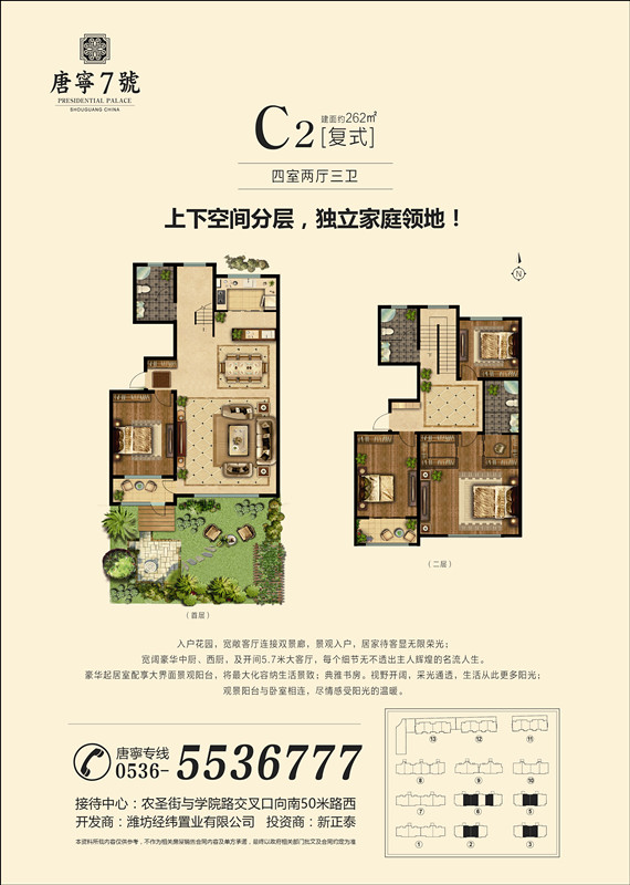 我們的戶型有105——190㎡景區(qū)洋房,210-360㎡的復(fù)式疊拼。我們項(xiàng)目以“ 健康、環(huán)保、人文居住 ”為主題,項(xiàng)目無論是產(chǎn)品定位,還是在規(guī)劃設(shè)計(jì)方面,都將打造成**的居住環(huán)境,產(chǎn)品采用通風(fēng)采光效果較好的板式建筑,每一個(gè)戶型都是采取設(shè)計(jì)師的精雕細(xì)琢。所有產(chǎn)品均是在采取客戶的建議和意見開發(fā)基礎(chǔ)上,結(jié)合壽光本地居住習(xí)慣設(shè)計(jì)而成,所有房源均南北通透,方正實(shí)用,保證居住舒適性。