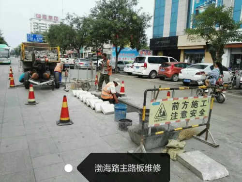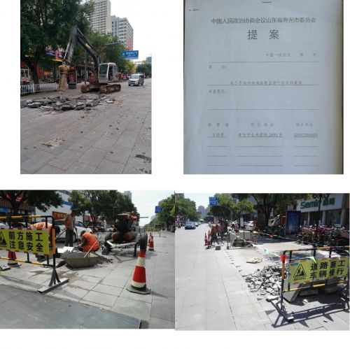 2004年,壽光市對渤海路進(jìn)行了高標(biāo)準(zhǔn)改造,將渤海路中段改建成集休閑、娛樂、購物、交通于一體的現(xiàn)代化商業(yè)步行街。但之前因服役時間長,渤海路損壞嚴(yán)重,連年“縫縫補補”不斷,影響了市民生活和出行,也制約著周圍商業(yè)的發(fā)展。多年來,擁有“政協(xié)委員”和“修路人”雙重身份的王曉軍,持續(xù)關(guān)注著這一問題,并于2018年完成了《關(guān)于盡快對渤海路路面進(jìn)行改造的提案》,令他高興地是,這一提案很快通過并實施。2018年10月9日,渤海路改造升級工程由市政公司競標(biāo)成功,在王曉軍帶隊下,渤海路開始了“精雕細(xì)琢”的“變身”。