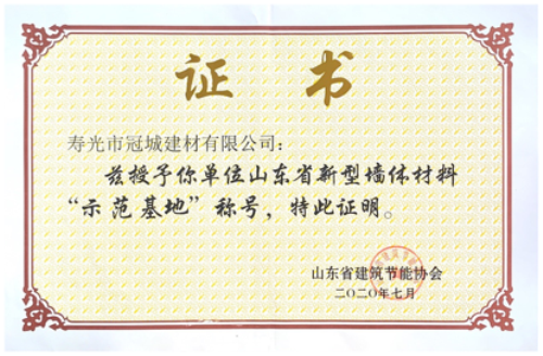公司曾榮獲濰坊市守合同重信用企業(yè)、新型城鎮(zhèn)化建設(shè)**單位、壽光市依法行政監(jiān)督**單位等榮譽,先后通過了質(zhì)量管理體系認(rèn)證、知識產(chǎn)權(quán)管理體系認(rèn)證。山東省新型墻體材料示范基地、山東省建筑節(jié)能協(xié)會常務(wù)理事、山東省建筑節(jié)能協(xié)會新型墻體材料分會副會長單位。